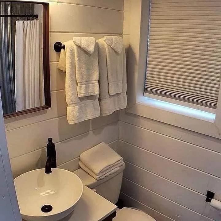 Stainless sink in Kitchen and Porcelain sink in Bathroom
